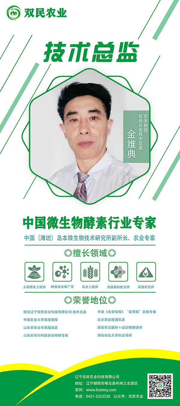 2021年(nián)3月(yuè)5日(rì),雙民(mín)農(nóng)業(yè)迎來(lái)中國(guó)(濰坊)☆島本微(wēi)生(shēng)物(wù)技(jì)術(shù)研究所副所長(cháng)農(nóng)業(y↕è)專家(jiā)金(jīn)維典教授,公司經過認真研究決定聘請(qǐng)金(jīn)教授擔任雙民(mín)農(nóng)業(yè)技(jì)術(shù)總監,開(kāi)啓雙民(mí n)酵素菌綠(lǜ)色農(nóng)業(yè)新篇章(zhāng)!